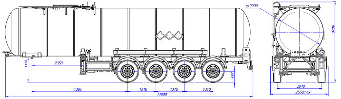 4-х осный битумовоз SF4B30.1S_11 - это весьма узкоспециализированная автоцистерна, которая предназначена для перевозки и временного хранения битума, мазута, сырой нефти, а также некоторых других веществ, разогретых до температуры 200 градусов. Конструкция цистерны выполнена из низколегированной стали. Объем цистерны составляет 30 м3. Четырехосный битумовоз разделяется на 1 отсек. Транспортируется тягачом колесной формулой 4х2 российского или иностранного производства.