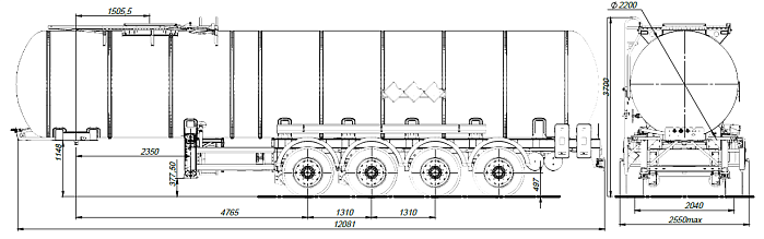 Ходовая часть полуприцепа четырехосная односкатная производства «BPW» (Германия), гарантия предоставляется фирмой «BPW» до 3 лет. Двухпроводная тормозная система, оснащенная системой 2S/2M с функцией ABS. Полуприцеп оборудован крыльями из ПВХ. Цистерна подвергается специальной обработки с предварительной грунтовкой, обогащенной цинком и окрашиванием в один цвет высококачественной двухкомпонентной краской. Высота седельно-сцепного устройства 1150-1250 мм. Первая и четвертая оси подъемные.