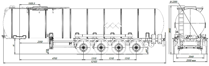 Ходовая часть полуприцепа четырехосная односкатная производства «BPW» (Германия), гарантия предоставляется фирмой «BPW» до 3 лет. Двухпроводная тормозная система, оснащенная системой 2S/2M с функцией ABS. Полуприцеп оборудован крыльями из ПВХ. Цистерна подвергается специальной обработки с предварительной грунтовкой, обогащенной цинком и окрашиванием в один цвет высококачественной двухкомпонентной краской. Высота седельно-сцепного устройства 1150-1250 мм. Первая и четвертая оси подъемные.