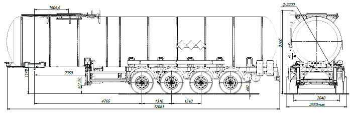 Ходовая часть полуприцепа четырехосная односкатная производства «BPW» (Германия), гарантия предоставляется фирмой «BPW» до 3 лет. Двухпроводная тормозная система, оснащенная системой 2S/2M с функцией ABS. Полуприцеп оборудован крыльями из ПВХ. Цистерна подвергается специальной обработки с предварительной грунтовкой, обогащенной цинком и окрашиванием в один цвет высококачественной двухкомпонентной краской. Высота седельно-сцепного устройства 1150-1250 мм. Первая и четвертая оси подъемные.