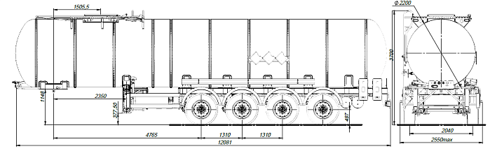 Ходовая часть полуприцепа четырехосная односкатная производства «BPW» (Германия), гарантия предоставляется фирмой «BPW» до 3 лет. Двухпроводная тормозная система, оснащенная системой 2S/2M с функцией ABS. Полуприцеп оборудован крыльями из ПВХ. Цистерна подвергается специальной обработки с предварительной грунтовкой, обогащенной цинком и окрашиванием в один цвет высококачественной двухкомпонентной краской. Высота седельно-сцепного устройства 1150-1250 мм. Первая и четвертая оси подъемные.
