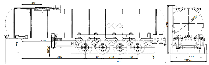 Ходовая часть полуприцепа четырехосная односкатная производства «BPW» (Германия), гарантия предоставляется фирмой «BPW» до 3 лет. Двухпроводная тормозная система, оснащенная системой 2S/2M с функцией ABS. Полуприцеп оборудован крыльями из ПВХ. Цистерна подвергается специальной обработки с предварительной грунтовкой, обогащенной цинком и окрашиванием в один цвет высококачественной двухкомпонентной краской. Высота седельно-сцепного устройства 1150-1250 мм. Первая и четвертая оси подъемные.