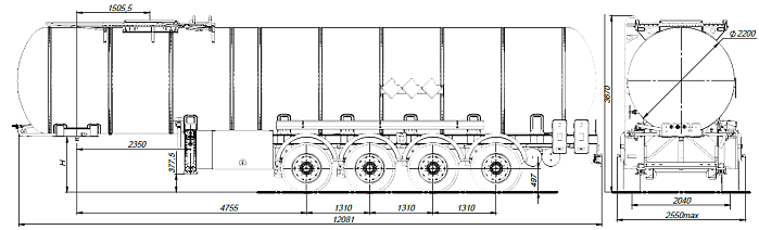 Ходовая часть полуприцепа четырехосная односкатная производства «BPW» (Германия), гарантия предоставляется фирмой «BPW» до 3 лет. Двухпроводная тормозная система, оснащенная системой 2S/2M с функцией ABS. Полуприцеп оборудован крыльями из ПВХ. Цистерна подвергается специальной обработки с предварительной грунтовкой, обогащенной цинком и окрашиванием в один цвет высококачественной двухкомпонентной краской. Высота седельно-сцепного устройства 1150-1250 мм. Первая и четвертая оси подъемные.
