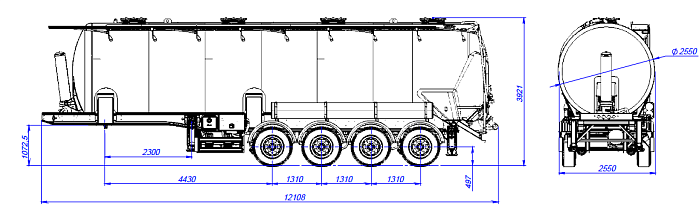 Муковоз SB4U53 - это полуприцеп-цистерна, предназначенная для бестарной перевозки сыпучей пищевой продукции (зерновых культур, муки, отрубей, комбикорма, сахара, кормов, гранул и др.)