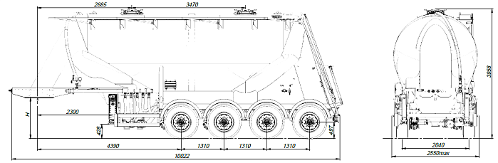 Четырехосный, односкатный полуприцеп: цементовоз SF4U32 из высокопрочной стали.
