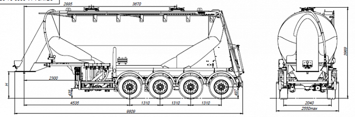 Четырехосный, односкатный полуприцеп: цементовоз SF4U34 из высокопрочной стали.