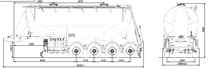 Четырехосный, односкатный полуприцеп: цементовоз SF4U34.1A_03 из алюминиевого сплава.