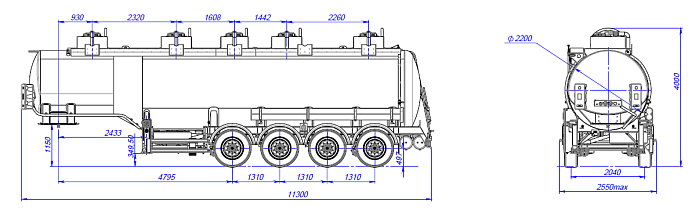 - ППЦ 4х осный бензовоз полуприцеп алюминиевый SF4338.5A_06, выполнена из алюминиевого сплава.