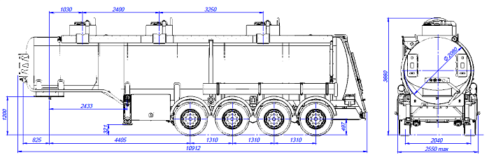 - Общая вместительность составляет 32 м3, с разделением на три отсека с объемами 8,2 м3/10,4 м3/13,4 м3.