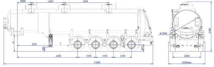 - Четырехосная односкатная с пневмоподвеской «BPW» (Германия), гарантия предоставляется фирмой «BPW» до 3 лет.