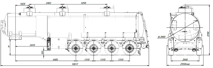 4х осный бензовоз полуприцеп стальной SF4332.3S_25 - полуприцеп-цистерна, предназначенная для перевозки и временного хранения бензина и светлых нефтепродуктов (бензина, керосина, дизельного топлива и т.д.). Конструкция цистерны выполнена из алюминиевого сплава. Объем цистерны составляет 32 м3. Бензовоз SF4332.3S_25 разделяется на 3 отсека, с объемами 8,2 м3/10,4 м3/13,4 м3. Бензовоз предназначен для эксплуатации с авто МАЗ, КАМАЗ, MAN, SCANIA и другие. Транспортируется тягачом колесной формулой 4х2 российского или иностранного производства. Ходовая часть полуприцепа четырехосная односкатная производства «BPW» (Германия), гарантия предоставляется фирмой «BPW» до 3 лет.