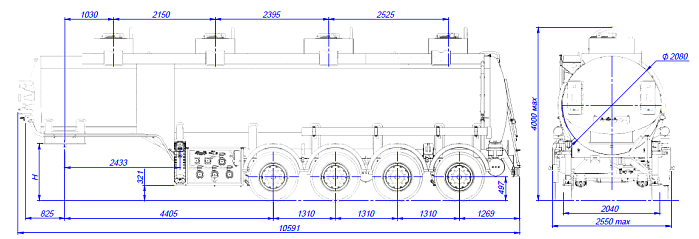 - Общая вместительность составляет 32 м3, с разделением на 4 отсека с объемами 8,2 м3/ 5,5 м3/ 11,0 м3/7,3 м3.