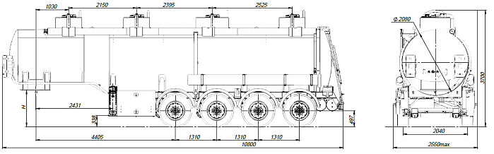 - Общая вместительность составляет 32 м3, с разделением на 4 отсека.