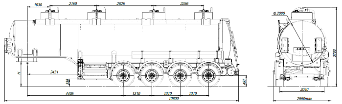 - Общая вместительность составляет 32 м3, с разделением на 4 отсека.