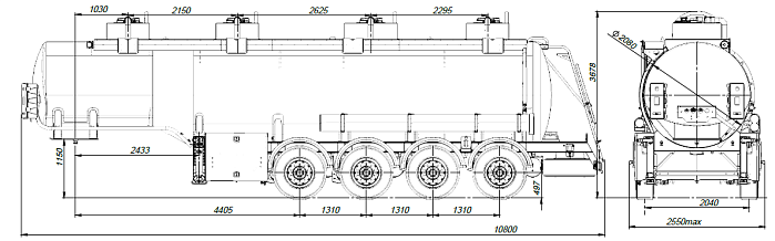 - Общая вместительность составляет 32 м3, с разделением на 4 отсека.