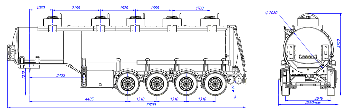 Ходовая часть полуприцепа четырехосная односкатная с пневмоподвеской или рессорной (на выбор клиента) производства «BPW» (Германия), гарантия предоставляется фирмой «BPW» до 3 лет. Двухпроводная тормозная система, оснащенная системой 2S/2M с функцией ABS. Полуприцеп оборудован крыльями из ПВХ. Цистерна подвергается специальной обработки с предварительной грунтовкой, обогащенной цинком и окрашиванием в один цвет высококачественной двухкомпонентной краской. Высота седельно-сцепного устройства от 1150 до 1250 мм. Дополнительно может быть установлено разнообразное оборудование, такое как насос, счетчик, узел выдачи топлива, система рекуперации паров, система нижнего налива и т.д.