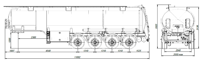 Транспортируется тягачом колесной формулой 4х2 российского или иностранного производства. Ходовая часть полуприцепа SF4332.3S_101 четырехосная односкатная производства «BPW» (Германия), гарантия предоставляется фирмой «BPW» до 3 лет. Двухпроводная тормозная система, оснащенная системой 2S/2M с функцией ABS. Полуприцеп оборудован крыльями из ПВХ. Цистерна подвергается специальной обработки с предварительной грунтовкой, обогащенной цинком и окрашиванием в один цвет высококачественной двухкомпонентной краской. Высота седельно-сцепного устройства от 1150 до 1250 мм. Дополнительно может быть установлено разнообразное оборудование, такое как насос, счетчик, узел выдачи топлива, система рекуперации паров, система нижнего налива и т.д. Первая и четвертая ось подъемные.
