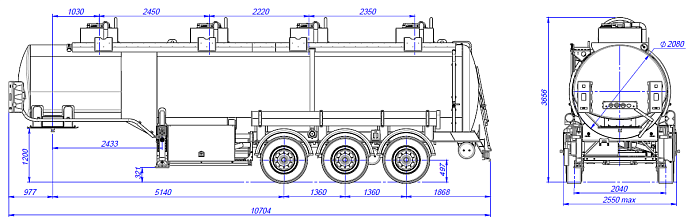 - Общая вместительность составляет 32 м3, с разделением на четыре отсека с объемами 8,2 м3/ 7,5 м3/ 9,1 м3/ 7,3 м3.
