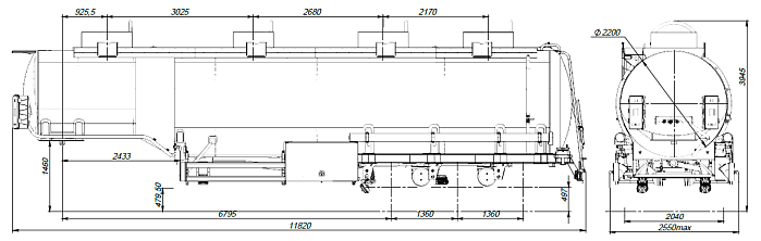 Полуприцеп-цистерна для светлых нефтепродуктов из низколегированной стали объемом 40 м3. Количество отсеков 4. Высота ССУ 1460 мм.