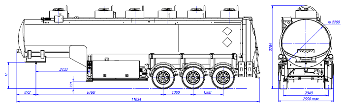 Цистерна подвергается специальной обработки с предварительной грунтовкой, обогащенной цинком и окрашиванием в один цвет высококачественной двухкомпонентной краской. Высота седельно-сцепного устройства от 1150 до 1250 мм. Дополнительно может быть установлено разнообразное оборудование, такое как насос, счетчик, узел выдачи топлива, система рекуперации паров, система нижнего налива и т.д.