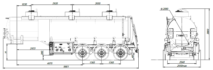- Общая вместительность составляет 28 м3, с разделением на три отсека с объемами 8,1 м3/ 10,6 м3/ 9,3 м3.