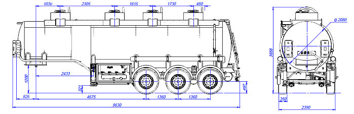 - Общая вместительность составляет 28 м3, с разделением на четыре отсека с объемами 8,1 м3/ 6,1 м3/ 5,7 м3/ 8,1 м3.