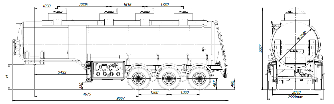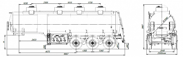 | Колесная база, мм | 4675 +1360 + 1360 |