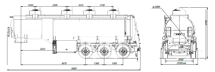 - Общая вместительность составляет 28 м3, с разделением на четыре отсека с объемами 8,1 м3/ 6,1 м3/ 5,7 м3/ 8,1 м3.