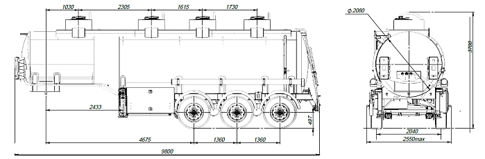 - Общая вместительность составляет 28 м3, с разделением на четыре отсека с объемами 8,1 м3/ 6,1 м3/ 5,7 м3/ 8,1 м3.