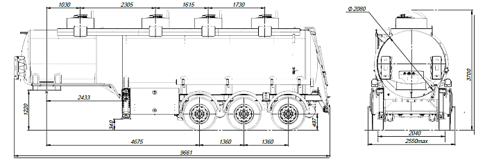 - Общая вместительность составляет 28 м3, с разделением на четыре отсека с объемами 8,1 м3/ 6,1 м3/ 5,7 м3/ 8,1 м3.