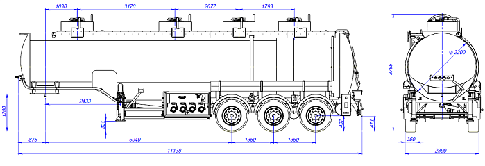 Бензовоз предназначен для эксплуатации с авто МАЗ, КАМАЗ, MAN, SCANIA и другие. Транспортируется тягачом колесной формулой 4х2 (6х4) российского или иностранного производства. Ходовая часть полуприцепа трехосная односкатная с пневмоподвеской или рессорной (на выбор клиента) производства «BPW» (Германия), гарантия предоставляется фирмой «BPW» до 3 лет. Двухпроводная тормозная система, оснащенная системой 2S/2M с функцией ABS. Полуприцеп оборудован крыльями из ПВХ.