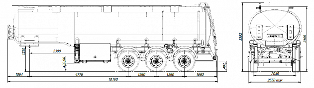 Полуприцеп-бензовоз по показателям массы достигают 32000 кг. Грузоподъемность техники более чем 24 тонны при размерах 10,20х3,35х2,55 м. Нагрузка цистерны для бензина на оси составляет 9600 тонн.