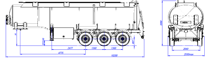 Цистерна подвергается специальной обработки с предварительной грунтовкой, обогащенной цинком и окрашиванием в один цвет высококачественной двухкомпонентной краской. Высота седельно-сцепного устройства от 1150 до 1250 мм. Дополнительно может быть установлено разнообразное оборудование, такое как насос, счетчик, узел выдачи топлива, система рекуперации паров, система нижнего налива и т.д.