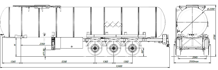 Объем цистерны составляет 32 м3. Общая масса транспортного средства 31950 кг. Грузоподъемность 23900 кг. Битумовоз разделяется на 1 отсек. Транспортируется тягачом колесной формулой 6х4 российского или иностранного производства. Ходовая часть полуприцепа трехосная односкатная с пневмоподвеской или рессорной (на выбор клиента) производства «BPW» (Германия), гарантия предоставляется фирмой «BPW» до 3 лет. Двухпроводная тормозная система, оснащенная системой 2S/2M с функцией ABS. Полуприцеп оборудован крыльями из ПВХ.