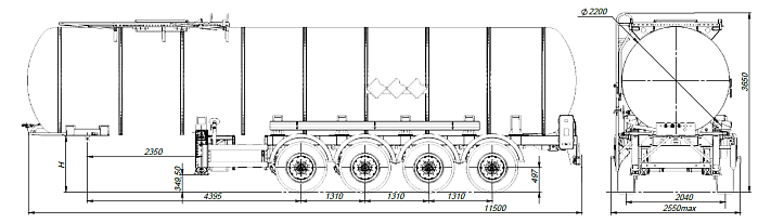4-х осный битумовоз SF4B30.1S_19 - это весьма узкоспециализированная автоцистерна, которая предназначена для перевозки и временного хранения битума, мазута, сырой нефти, а также некоторых других веществ, разогретых до температуры 200 градусов. Конструкция цистерны выполнена из низколегированной стали. Объем цистерны составляет 30 м3. Четырехосный битумовоз разделяется на 1 отсек. Транспортируется тягачом колесной формулой 4х2 российского или иностранного производства.