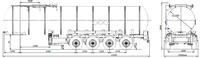 Ходовая часть полуприцепа четырехосная односкатная производства «BPW» (Германия), гарантия предоставляется фирмой «BPW» до 3 лет. Двухпроводная тормозная система, оснащенная системой 2S/2M с функцией ABS. Полуприцеп SF4B30.1S_20 оборудован крыльями из ПВХ. Цистерна подвергается специальной обработки с предварительной грунтовкой, обогащенной цинком и окрашиванием в один цвет высококачественной двухкомпонентной краской. Высота седельно-сцепного устройства 1150-1250 мм. Общая длина 11,5 м. Высота 3,65 м. Ширина 2,55 м.