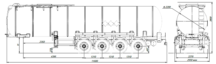 4-х осный битумовоз SF4B30.1S_33 - это весьма узкоспециализированная автоцистерна, которая предназначена для перевозки и временного хранения битума, мазута, сырой нефти, а также некоторых других веществ, разогретых до температуры 200 градусов. Конструкция цистерны выполнена из низколегированной стали. Объем цистерны составляет 30 м3. Четырехосный битумовоз разделяется на 1 отсек. Транспортируется тягачом колесной формулой 4х2 российского или иностранного производства.