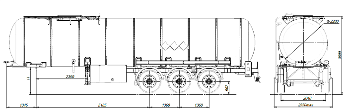 Цистерна подвергается специальной обработки с предварительной грунтовкой, обогащенной цинком и окрашиванием в один цвет высококачественной двухкомпонентной краской. Высота седельно-сцепного устройства 1150 мм. Дополнительно может быть установлено разнообразное оборудование, такое как насос, счетчик, узел выдачи топлива, система рекуперации паров, система нижнего налива и т.д.