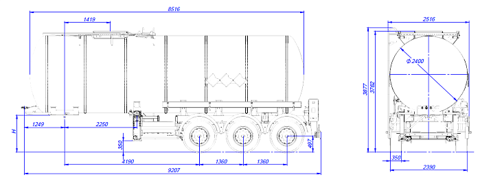 Цистерна подвергается специальной обработки с предварительной грунтовкой, обогащенной цинком и окрашиванием в один цвет высококачественной двухкомпонентной краской. Высота седельно-сцепного устройства от 1150 до 1250 мм. Дополнительно может быть установлено разнообразное оборудование, такое как насос, счетчик, узел выдачи топлива, система рекуперации паров, система нижнего налива и т.д.
