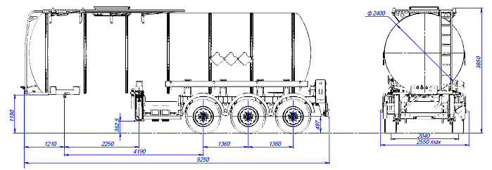 Цистерна подвергается специальной обработки с предварительной грунтовкой, обогащенной цинком и окрашиванием в один цвет высококачественной двухкомпонентной краской. Высота седельно-сцепного устройства от 1150 до 1250 мм. Дополнительно может быть установлено разнообразное оборудование, такое как насос, счетчик, узел выдачи топлива, система рекуперации паров, система нижнего налива и т.д.