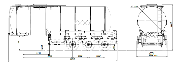 Цистерна подвергается специальной обработки с предварительной грунтовкой, обогащенной цинком и окрашиванием в один цвет высококачественной двухкомпонентной краской. Высота седельно-сцепного устройства 1250 мм. Дополнительно может быть установлено разнообразное оборудование, такое как насос, счетчик, узел выдачи топлива, система рекуперации паров, система нижнего налива и т.д.