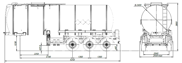 Цистерна подвергается специальной обработки с предварительной грунтовкой, обогащенной цинком и окрашиванием в один цвет высококачественной двухкомпонентной краской. Высота седельно-сцепного устройства 1150 мм. Дополнительно может быть установлено разнообразное оборудование, такое как насос, счетчик, узел выдачи топлива, система рекуперации паров, система нижнего налива и т.д.