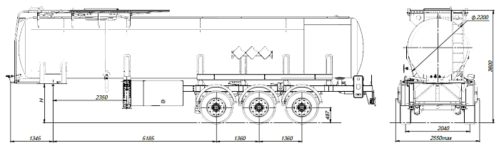Цистерна подвергается специальной обработки с предварительной грунтовкой, обогащенной цинком и окрашиванием в один цвет высококачественной двухкомпонентной краской. Высота седельно-сцепного устройства 1250 мм. Дополнительно может быть установлено разнообразное оборудование, такое как насос, счетчик, узел выдачи топлива, система рекуперации паров, система нижнего налива и т.д.