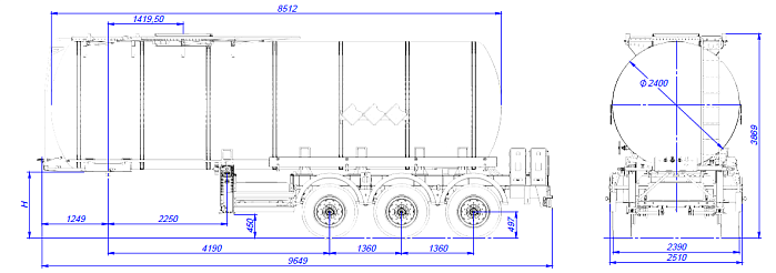 Битумовоз разделяется на 1 отсек. Транспортируется тягачом колесной формулой 6х4 российского или иностранного производства. Ходовая часть полуприцепа трехосная односкатная с пневмоподвеской или рессорной (на выбор клиента) производства «BPW» (Германия), гарантия предоставляется фирмой «BPW» до 3 лет. Двухпроводная тормозная система, оснащенная системой 2S/2M с функцией ABS. Полуприцеп SF3B30.1S ССУ 1350, 1 отсек_03 оборудован крыльями из ПВХ. Масса снаряжённого ТС 7950 кг.