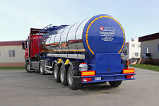 Битумовоз имеет общую массу 32,4 тонны, при этом его грузоподъемность составляет 25 тонн. В наличии компании «Сеспель» имеются цистерны для перевозки битума грузоподъемностью 30 000 кг.