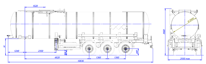 Битумовоз SF3B25_1S_04, ССУ 1350, 25 м3, 1 отсек - это весьма узкоспециализированная автоцистерна, которая предназначена для перевозки и временного хранения битума, мазута, сырой нефти, а также некоторых других веществ, разогретых до температуры 200 градусов. Конструкция цистерны выполнена из низколегированной стали.