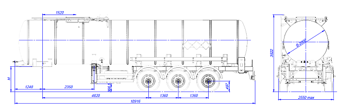 Цистерна подвергается специальной обработки с предварительной грунтовкой, обогащенной цинком и окрашиванием в один цвет высококачественной двухкомпонентной краской. Высота седельно-сцепного устройства от 1150 до 1250 мм. Дополнительно может быть установлено разнообразное оборудование, такое как насос, счетчик, узел выдачи топлива, система рекуперации паров, система нижнего налива и т.д.