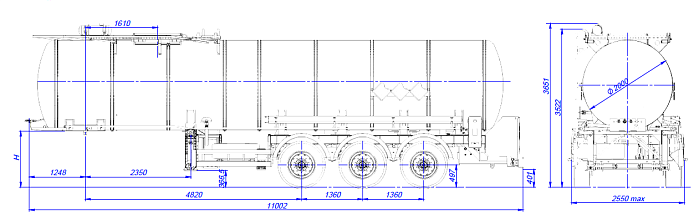 Цистерна подвергается специальной обработки с предварительной грунтовкой, обогащенной цинком и окрашиванием в один цвет высококачественной двухкомпонентной краской. Высота седельно-сцепного устройства от 1250 до 1350 мм. Дополнительно может быть установлено разнообразное оборудование, такое как насос, счетчик, узел выдачи топлива, система рекуперации паров, система нижнего налива и т.д.
