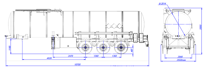 Битумовоз SF3B25_1S_10, ССУ 1250, 25 м3, 1 отсек - это весьма узкоспециализированная автоцистерна, которая предназначена для перевозки и временного хранения битума, мазута, сырой нефти, а также некоторых других веществ, разогретых до температуры 200 градусов. Конструкция цистерны выполнена из низколегированной стали. Общая длина 10700 мм. Высота 3550 мм. Ширина 2550 мм. Колесная база 4820+1360+1360 мм. Общая масса брутто 31300 кг.