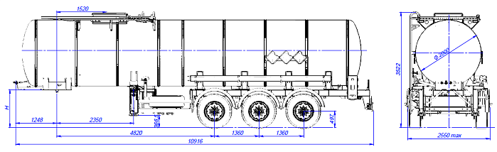 Битумовоз SF3B25_1S_12, ССУ 1250, 25 м3, 1 отсек - это весьма узкоспециализированная автоцистерна, которая предназначена для перевозки и временного хранения битума, мазута, сырой нефти, а также некоторых других веществ, разогретых до температуры 200 градусов. Конструкция цистерны выполнена из низколегированной стали. Общая длина 10700 мм. Высота 3550 мм. Ширина 2550 мм. Колесная база 5230+1360+1360 мм. Общая масса брутто 31000 кг.